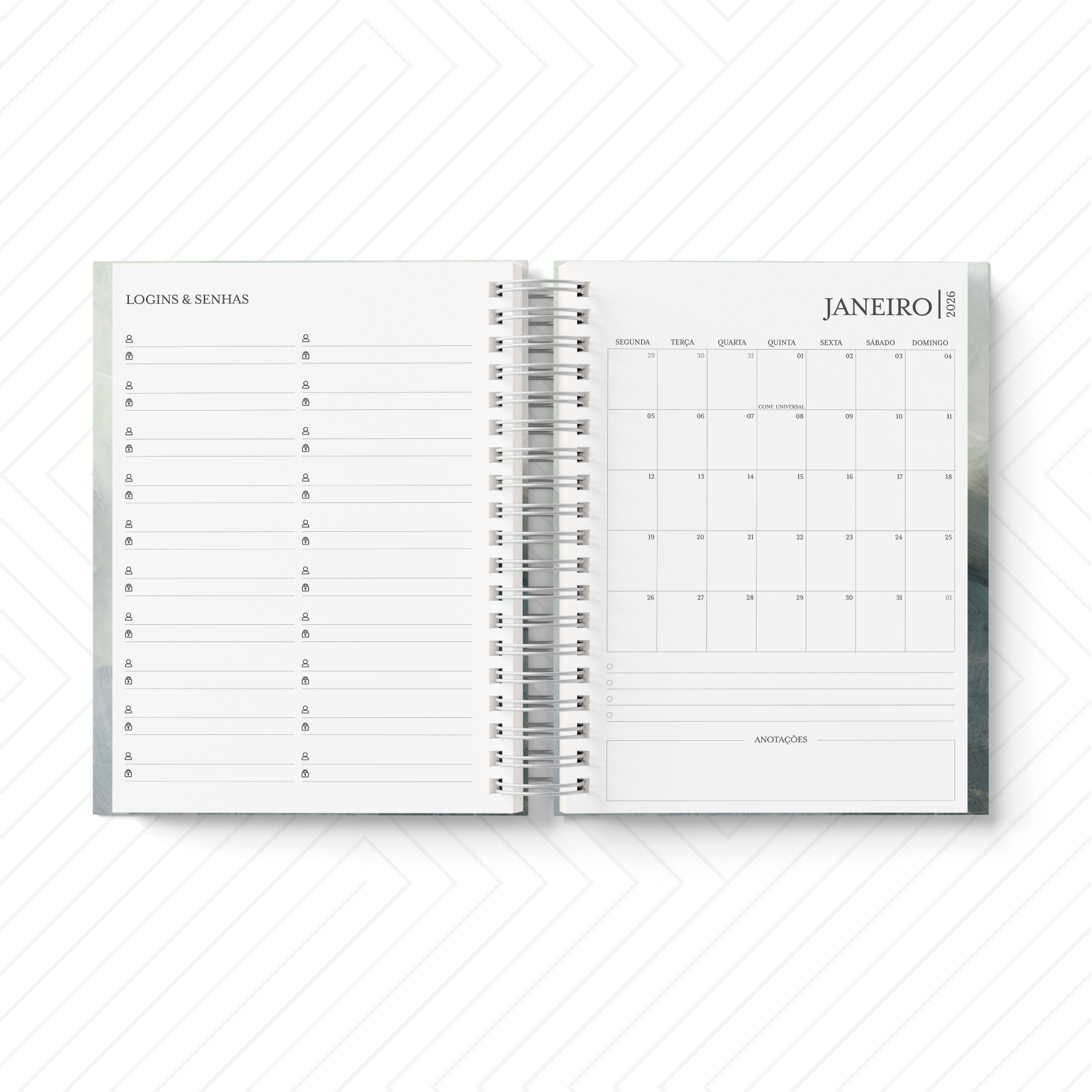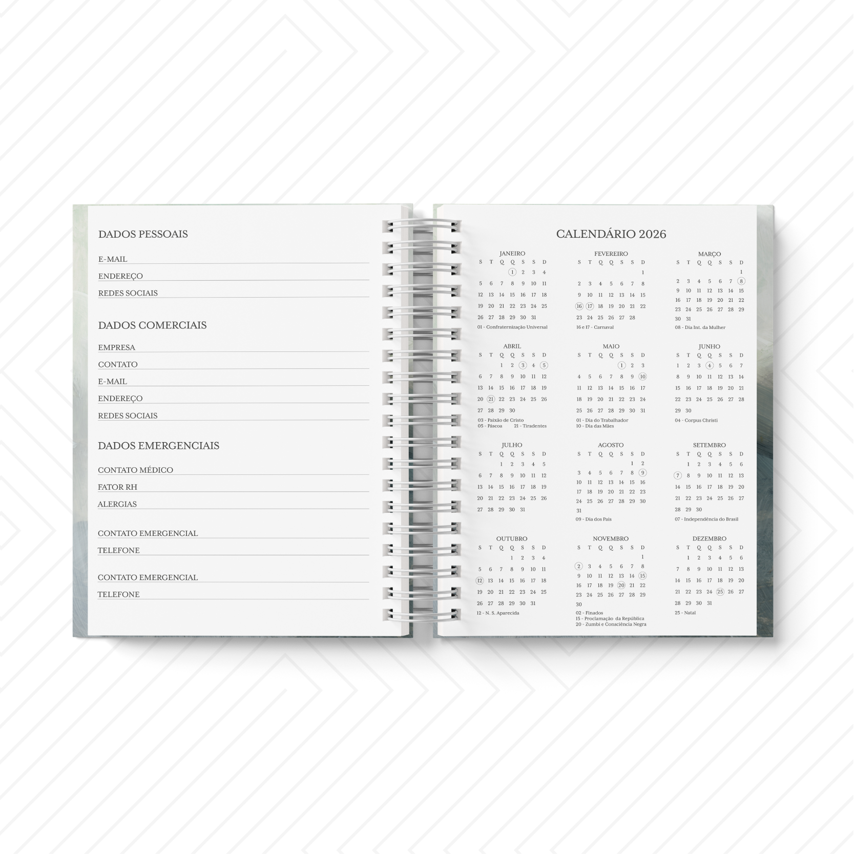 Cada agenda conta com capa personalizada de acordo com a profissão — perfeita para adivogados, médicos, dermatologistas, profissionais de marketing, personal trainers, podólogos, secretários, técnicos de enfermagem, ginecologistas, fotógrafos, fonoaudiólogos, enfermeiros, empreendedores, diretores, dentistas, coordenadores, psicólogos, veterinários, e muitas outras homens que dedicam sua vida a cuidar, criar, ensinar, inspirar e realizar.